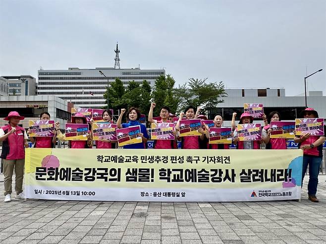 학비노조는 기자회견에서 "학교 예술강사 지원사업이 지난 윤석열 정부에서 2년간 예산이 86%나 삭감돼 1년 중 5개월만 운영되는 비정상적 운영으로 파행이 계속되고 있다"고 주장했다. 이어 "파면된 윤석열이 망쳐놓은 문화예술교육의 피해는 고스란히 학생들과 예술강사에게 돌아가고 있다"며 "관련 예산 삭감으로 학생들은 문화예술교육의 기회를 잃었고, 예술강사들은 연봉 310만 원, 월 약 20만 원의 생계 절벽에 내몰렸다'고 강조했다.