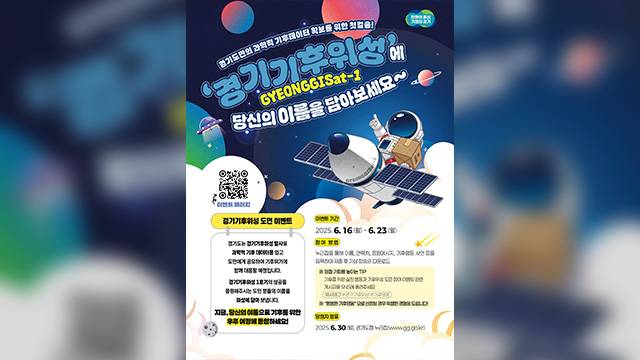 기후위성 발사를 앞두고 오늘(16일)부터 23일까지 도민참여 이벤트 '내 이름, 우주로 간다'를 열어 누리집(climate.gg.go.kr/event)을 통해 희망자 접수도 합니다.