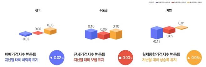 월세가격지수는 전국 평균 0.05% 상승으로 전월과 동일했다. 서울은 0.16%, 수도권 0.10%, 지방 0.01% 상승하며 월세 선호 경향이 지속됐다.