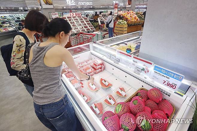 사진은 16일 서울의 한 대형마트 조각·미니 수박 판매대.