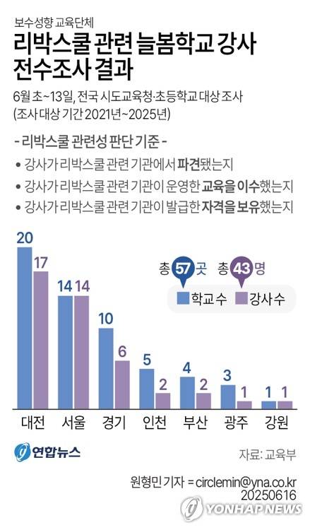 [그래픽] 리박스쿨 관련 늘봄학교 강사 전수조사 결과