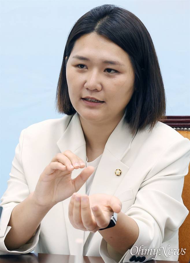 | ▲ 제22대 국회의원직을 비례대표로 승계한 손솔 진보당 의원이 12일 오후 서울 여의도 국회 진보당 원내대표 회의실에서 <오마이뉴스>와 만나 이준석 개혁신당 대선 후보의 TV토론 당시 논란이 됐던 여성 신체 언급 발언과 관련해 "공직자나 정치인, 등록된 언론인의 혐오 표현의 경우에는 단순 유포도 처벌할 수 있는 조항이 필요하다"라며 "혐오 표현에 대한 규제, 차별 행위 금지를 다양하고 적극적인 방법으로 제도화해야한다"라고 말했다. |