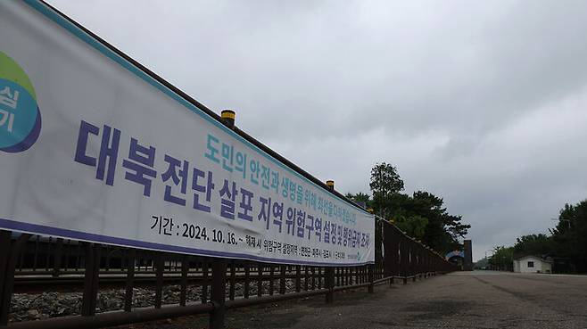 ▲ 정부가 대북 전단 살포 예방 및 처벌 대책을 논의 중인 가운데 16일 오후 경기도 파주시 임진각에 전단 살포 금지 현수막이 걸려 있다.