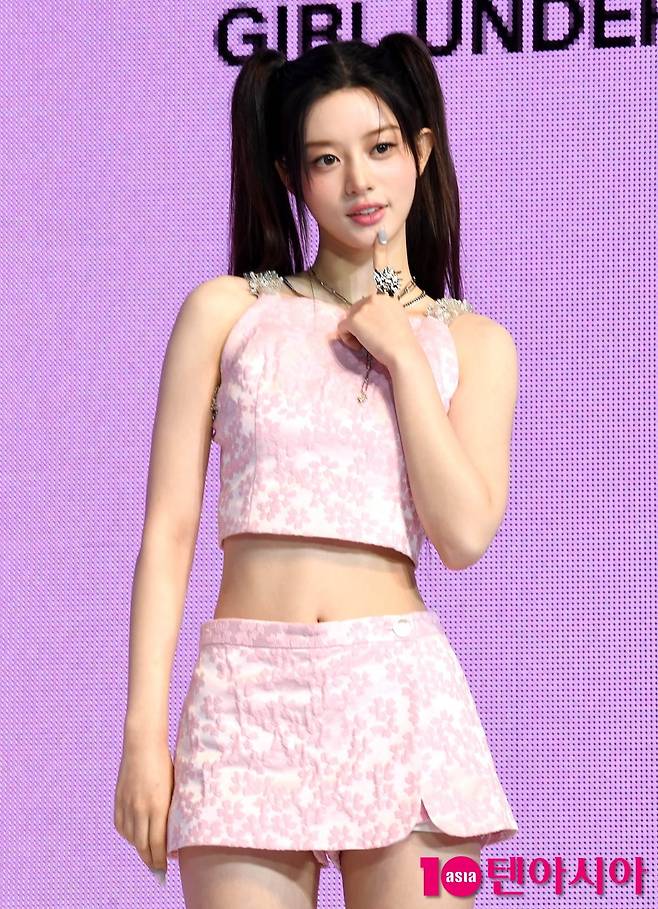 [텐아시아=조준원 기자]그룹 아일릿(ILLIT/윤아, 민주, 모카, 원희, 이로하) 민주가 16일 서울 광진구 예스24 라이브홀에서 열린 미니 3집 ‘bomb’ 쇼케이스에 참석해 포즈를 취하고 있다.