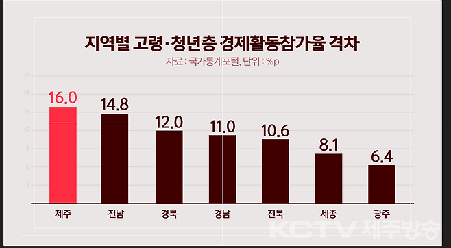 도내 고령층과 청년층 간 경제활동참가율 격차는 16%포인트로 전국 17개 시도 가운데 가장 높았습니다.