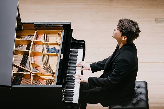 여러 작곡가의 음악을 한 무대에 꿰는 자리였지만 연주 직전 조성진은 한결 같았다. 멀리서 보니 흰 건반을 오른손으로 왼쪽에서 오른쪽으로 두 번 쓰다듬는 것처럼 보였다. 손수건으로 건반을 닦는 행동이었지만 작곡가들을 자신의 피아노로 불러오는 듯한 의식처럼 보였다.