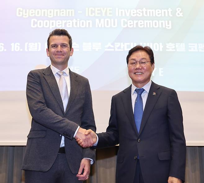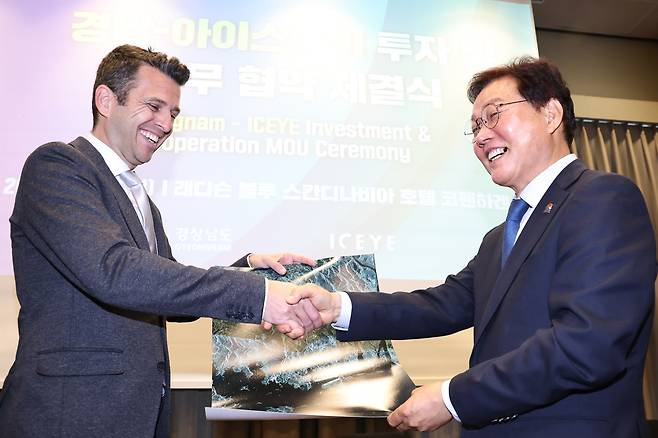 | ▲ 박완수 경남도지사, 핀란드 소형 합성개구레이더(SAR) 위성 기업인 아이스아이(ICEYE)와 투자유치?업무협약을 체결 |