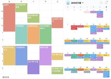 | ▲ 학업과 취업 준비를 병행 중인 대학생 P씨의 일정표 |
