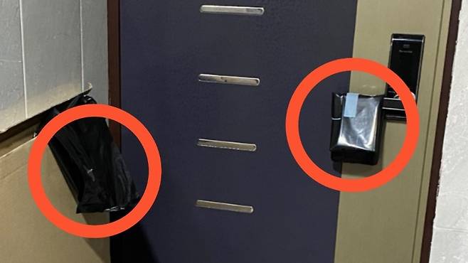 | ▲ 서울 노원구 대학가 원룸에 분리수거 대행업체용 봉투가 걸려있다. |