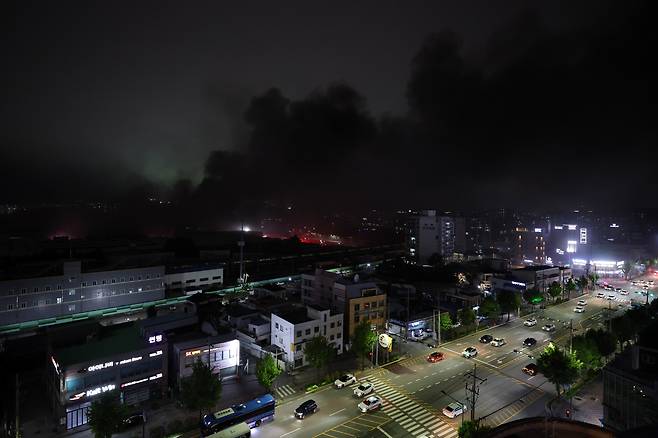 | ▲ 17일 오전 7시 11분께 광주광역시 광산구 소촌동 금호타이어 광주공장에서 불이 나 소방당국이 진화 작업을 벌이고 있다. |