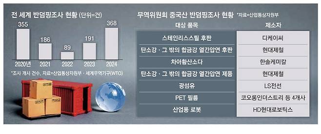 16일 산업통상자원부 무역위원회에 따르면 세계무역기구(WTO)가 집계한 '지난해 전 세계 반덤핑조사 건수'는 368건으로 2001년 372건 이후 23년 만에 최대치를 기록했다. 2023년 191건과 비교해서는 2배가량 늘어났고, 2022년 89건과 비교해서는 4배 이상 폭증했다.
