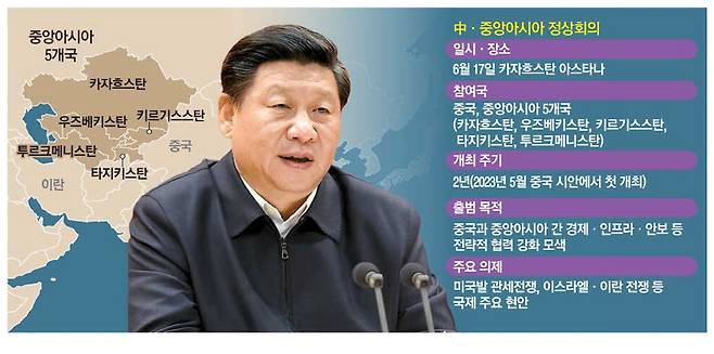시 주석은 17일 아스타나에서 열리는 중국·중앙아시아 정상회의에 참석한다. 중앙아시아에서는 카자흐스탄 우즈베키스탄 키르키스스탄 타지키스탄 투르크메니스탄 등 5개국 정상이 참여할 예정이다. 이번 회의에서는 교통·에너지·안보 등 다양한 분야에서 중국과 중앙아시아 간 협력 방안이 논의될 것으로 보인다.