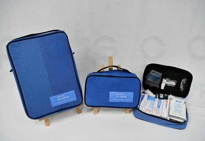 2024년에는 폐근무복을 새로운 재활용 방식인 '업사이클링'으로 만든 의료용품 파우치와 키트(사진)를 포항·광양 지역 복지센터에 기부, 환경보호와 지역사회 안전·보건 사각지대 지원에 나서면서 다양한 효과를 거뒀다. 안전을 의미하는 근무복의 특성을 고려해 업사이클링하면서 재탄생한 파우치에 소염진통제, 연고, 소독약, 붕대 등을 담은 의료용품 키트와 자동제세동기 키트가 담겨 인근 지역 복지센터에 전달됐다.