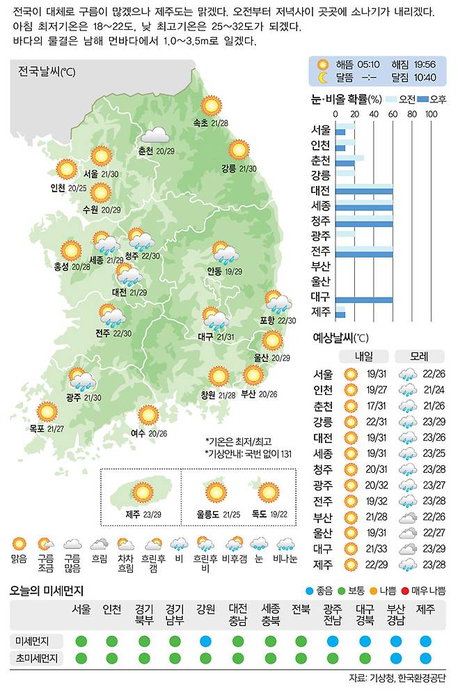 [17일의 날씨] 저녁까지 곳곳 소나기