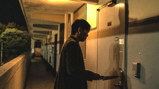 마지막으로 504호에 사는 수상한 이웃으로 등장하는 류경수는, 말 그대로 '절대 마주치고 싶지 않은 이웃'의 표본을 연기한다. 칼을 든 채 위협하는 장면 등은 류경수 특유의 강렬한 존재감과 맞물려 영화의 긴장도를 최고조로 끌어올린다.