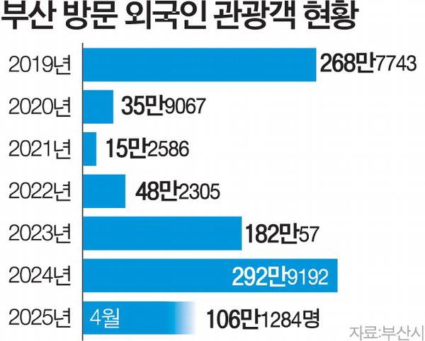 올해 1~4월 부산 방문 외국인 관광객이 100만 명을 넘어섰다.