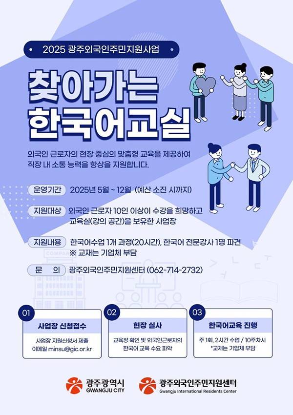 광주시는 교육 수강을 희망하는 평동산단 내 사업장에 대한 추가 모집도 진행한다. 외국인근로자 10인 이상이 수강을 희망하고 교육실을 보유한 사업장이면 가능하다.