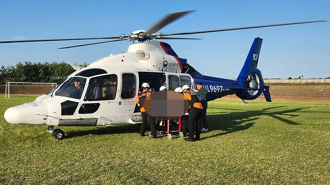 ▲ 닥터헬기로 옮겨지는 교통사고 환자