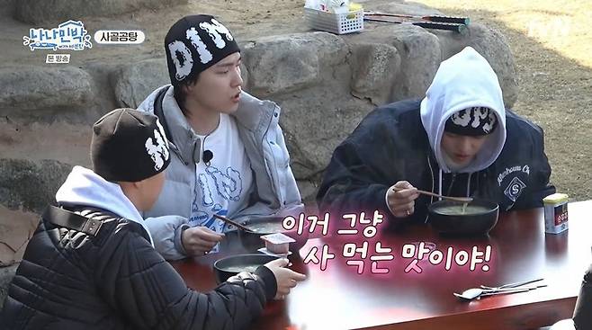 이날 사골곰탕 당번들이 고생한 덕에 사골곰탕이 완성됐다. 호시는 설거지를 줄이기 위해 "혹시 젓가락 필요한 사람 있냐. 그냥 숟가락으로 퍼먹으면 되지 않냐"라고 물었다. 이를 들은 조슈아는 "(그러다) 내일 설거지 안 하려고 손으로 먹는 거 아니냐"라며 웃기도. 12시간 끓인 곰탕을 먹은 디노는 "이거 그냥 사 먹는 맛이다"라고 감탄했고, 도겸은 "진짜 맛있다. 엄마가 해준 맛이 난다"라며 정성을 느꼈다.