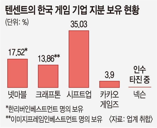 중국의 거대 정보기술(IT) 회사 텐센트가 한국의 1위 게임업체 넥슨 인수를 타진 중이라는 외신 보도에 업계가 술렁이고 있다.