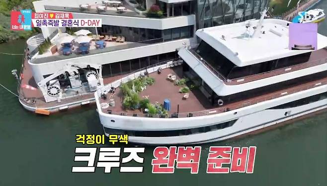 하지만 헤어 메이크업을 마치고 다시 찾은 크루즈는 블루 계열의 화사한 꽃들로 가득했고 포토존, 버진로드, 메인 공간까지 완벽하게 완성돼 있었다. 이를 본 MC들은 "너무 예쁘다"라며 연신 감탄했다.