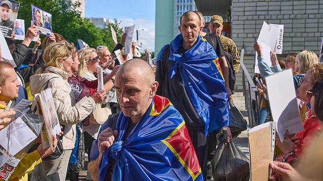 ▲ 12일 포로 교환으로 돌아온 우크라이나 군인들