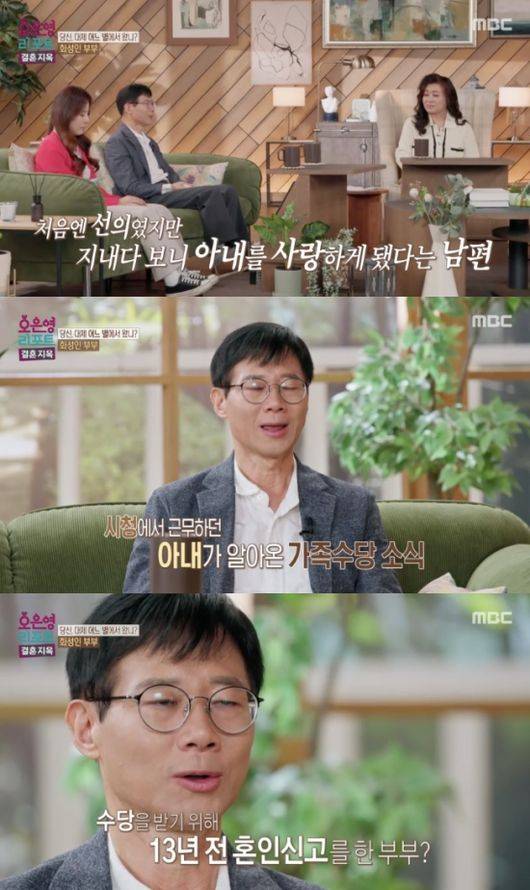 박지민은 “결혼을 선의로 한다는 게 앞뒤가 안 맞는다. 억지로 결혼한 건 아니지 않냐”라고 물었고, 남편은 “처음에 중국에서 데려올 때 마음도 있었지만 선의적인 부분이 컸다. 같이 살다 보니 정과 사랑이 싹텄다. 혼인 신고도 고민을 하고 있었는데 아내가 시청에서 가족수당 소식을 알아왔다. 수당을 받기 위해 혼인 신고를 했다”라고 답했다.