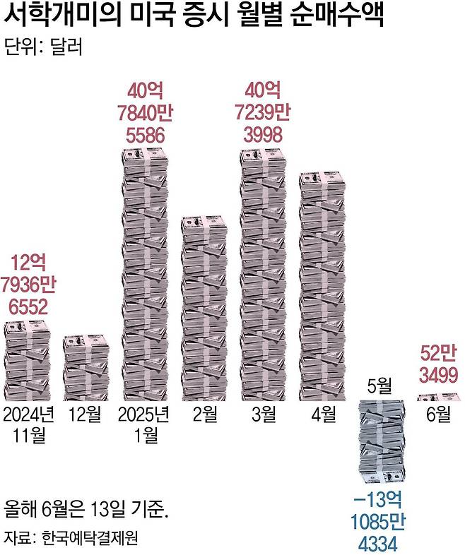 이처럼 변동성, 환율, 세금 이슈 등 ‘삼중고’가 겹치자 국내 투자자들은 지난달 미 증시에서 13억1085만 달러(약 1조7851억 원)를 순매도했다. 지난해 11월부터 올 4월까지 이어지던 6개월 연속 순매수 행진이 끝난 것이다.