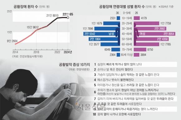 이른바 ‘연예인 병’으로 불리는 공황장애가 최근 빠르게 늘고 있다. 16일 건강보험심사평가원에 따르면 지난해 공황장애로 진료받은 환자는 약 22만명으로 10년 전(9만 2664명)보다 두 배 이상 늘었다. 최근 방송인 이경규(65)씨가 공황장애 약물을 복용하고 차량을 운전한 혐의로 경찰 조사를 받으면서 관련 약물에 관한 관심도 높아졌다.