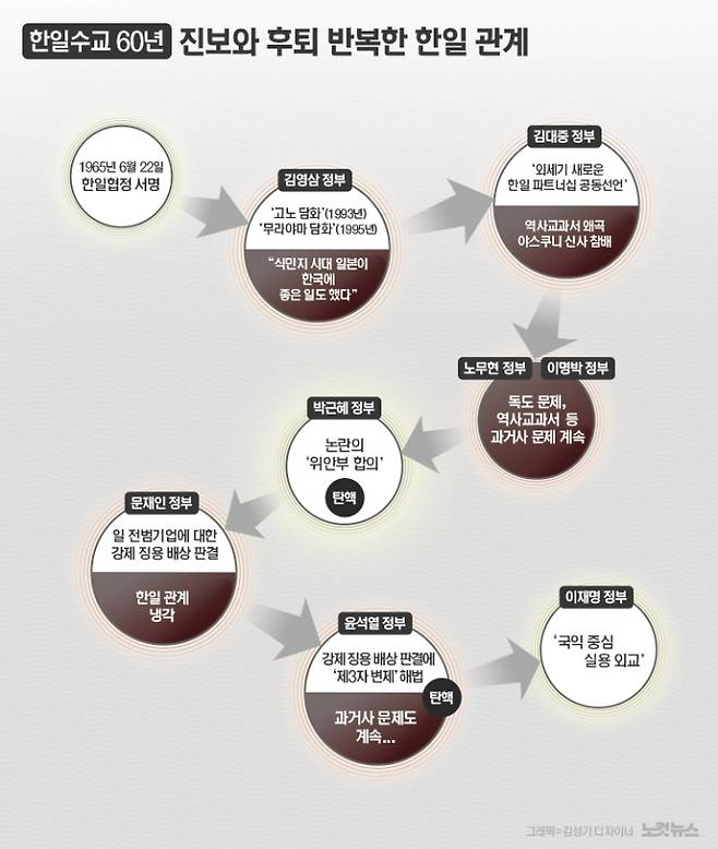 국교 정상화 60주년을 맞은 현재 한일 관계를 어떻게 풀어갈 것인지는 이재명 대통령이 직면한 과제 중 하나다. 당장 윤 정부의 제3 변제안에 어떠한 입장을 취할지가 이재명 정부 대일외교의 가늠자가 될 예정이다.