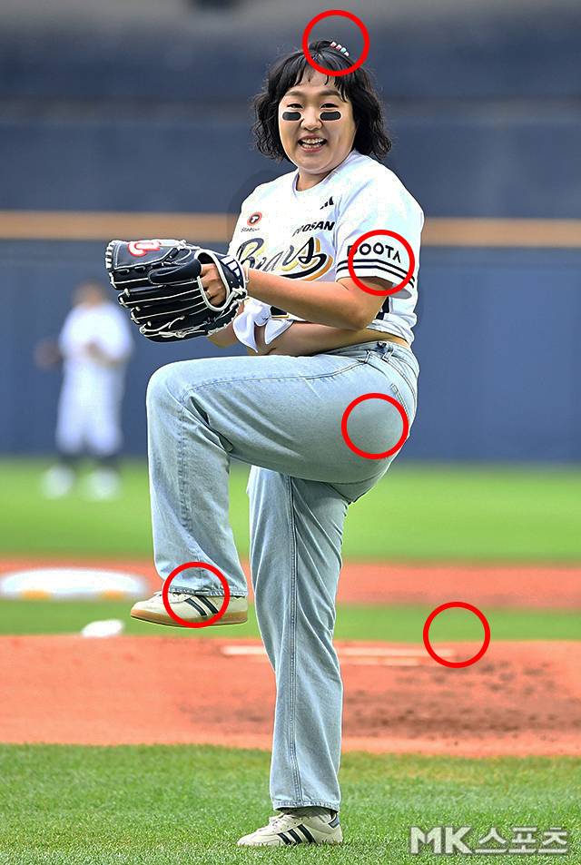이날 시구 행사에서 배꼽 위에서 유니폼 상의를 질끈 묶어 풍만한 복근을 자랑하며 마운드에 오른 이수지는 개그우먼답게 눈 밑에 빛반사 방지 테이프까지 붙이고 등판해 스트라이크만큼 시원하고 유쾌한 웃음을 선사했습니다.
