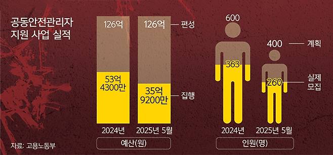 현장 반응은 뜨뜻미지근하다. 16일 고용부가 더불어민주당 박홍배 의원실에 제출한 자료를 보면 지난해 공동안전관리자 채용 인원은 363명으로 목표(600명) 대비 60.5%에 그쳤다. 올해는 목표가 400명으로 줄었고, 지난달까지 260명이 채용됐다. 지난해 중소기업 협단체에서 채용했던 곳들이 있다는 점을 고려하면 여전히 미진한 상황이다.