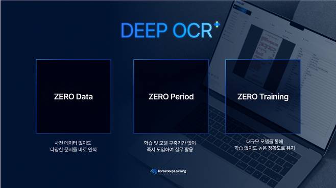 기존 OCR은 문서마다 학습해야 해 시간이 오래 걸리고 새로운 템플릿에 취약하지만, 한국딥러닝의 VLM 기반 OCR은 의미를 추론하는 기술을 통해 도입 기간을 대폭 줄였으며 초기 개발 비용도 거의 제로에 가깝다는 설명이다.