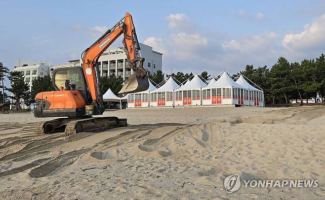 개장 앞두고 준비 한창인 경포해수욕장