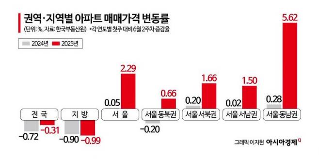 마포구 아현동의 한 공인중개사는 "강남·용산이 묶이면서 갭 투자 수요가 상대적으로 싼 마포로 몰렸다"며 "'지금 사야 한다'는 추격 매수가 붙은 형국"이라고 말했다. 인근 염리동 한 중개사도 "토허제 지정 소문이 돌자 오히려 매수세가 더 붙었다"며 "묶이기 전에 사려는 수요와 더 비싸게 팔려는 심리가 맞물렸다"고 말했다.