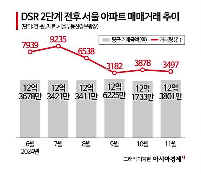 3단계 스트레스 DSR을 두고 시장에서는 주택 거래가 일정 부분 줄어들 것으로 예상했다. 지난해 9월 2단계 스트레스 DSR을 적용했을 때도 거래가 대폭 줄었다. 지난해 2단계 시행 전 3개월(6~8월)간 월평균 아파트 매매거래량은 7904건에 달했는데, 3단계 시행 후 3개월(9~11월)은 월평균 3519건으로 절반 이하로 감소했다.