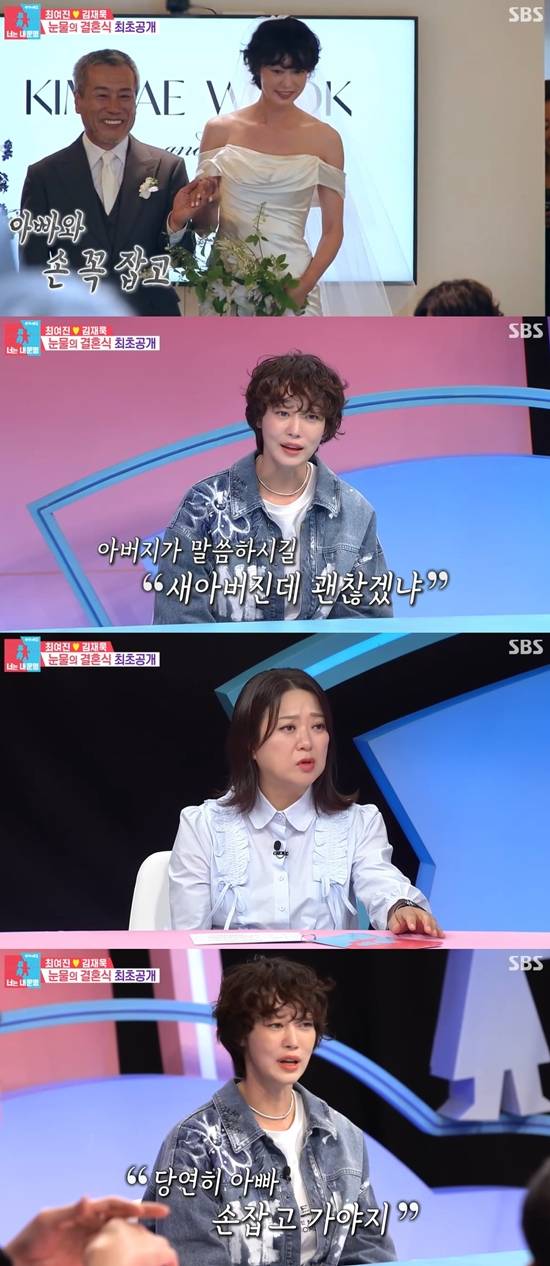이어 최여진의 크루즈 결혼식 현장이 공개됐다. 최여진은 새아버지의 손을 잡고 입장했다. 최여진은 "아버지가 '새아버지인데 괜찮겠냐'라고 얘기하셨다. '키워주셨는데 당연히 아빠 손잡고 가야지'(라고 답했다). 아버지 손잡고 들어가는 의미가 있다"라며 새아버지에 대한 애정을 드러냈다. 김숙이 "20년이 넘으셨다"라고 덧붙였다.