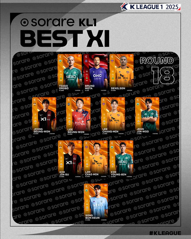 18라운드 베스트11에는 MVP 모따를 비롯해 티아고(전북), 데닐손, 이창민(이상 제주), 전진우(전북), 이승원(김천), 정승원, 김진수(이상 서울), 임채민(제주), 김영빈, 골키퍼 송범근(이상 전북)이 이름을 올렸다.