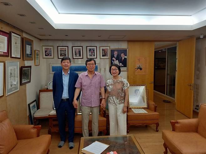 | ▲ 손을 잡은 삼형제(맏형은 작고하였기에 대신 형수가 손을 잡다) |