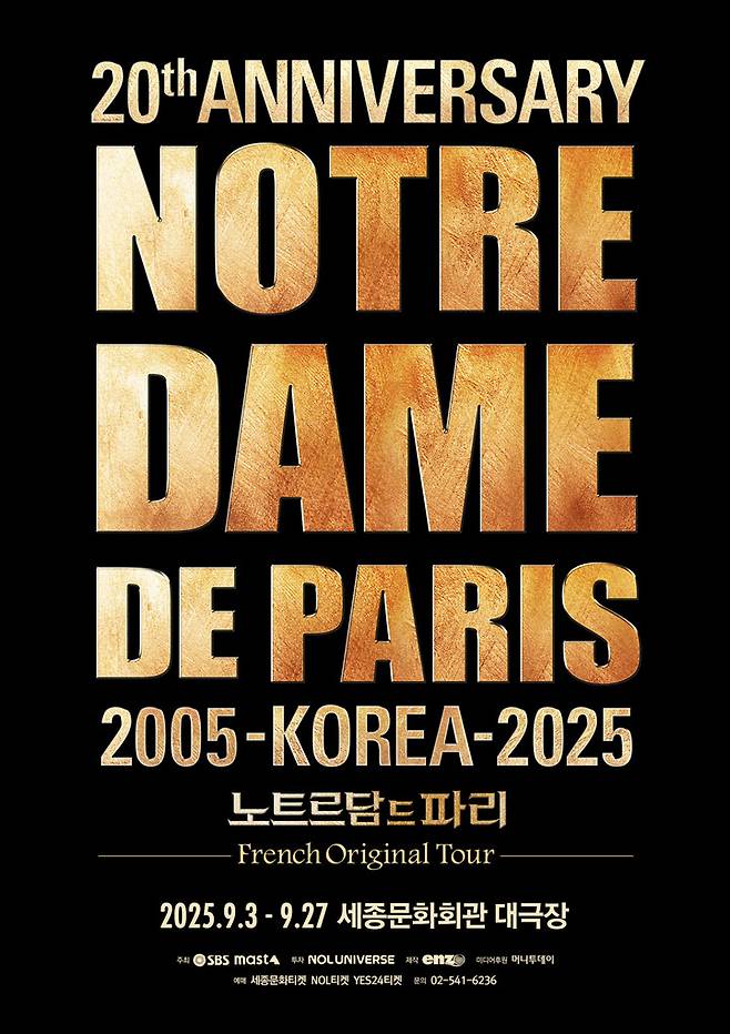 (MHN 장민수 기자) 뮤지컬 '노트르담 드 파리'가 프렌치 오리지널 투어 내한 20주년 기념 공연을 펼친다.