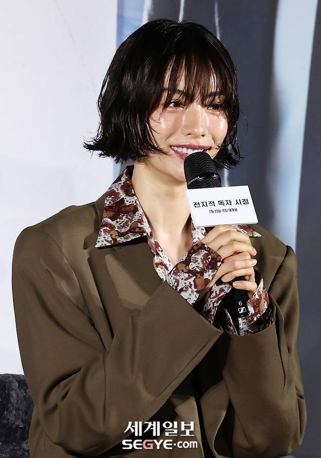 배우 나나가 17일 서울 롯데시네마건대점에서 열린 영화 '전지적 독자 시점'의 제작보고회에 참석해 인사말을 하고 있다.