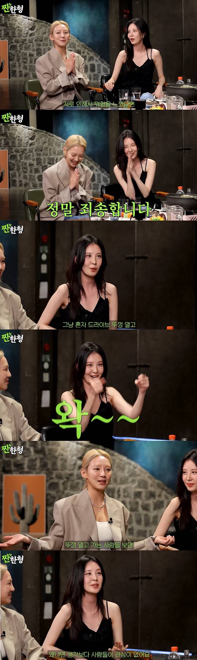 이어 효연은 "사과하자. 저로 인해 위협을 느꼈다면 죄송하다. 지금 안 그런다"고 고개를 숙였고 서현 "저도 죄송해요"라고 함께 사과해 웃음을 안겼다.