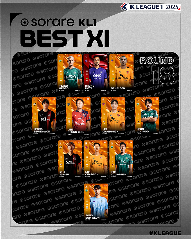 베스트11에는 MVP에 선정된 모따를 비롯해 김영빈, 송범근, 전진우, 티아고(이상 전북), 데닐손, 이창민, 임채민(이상 제주), 김진수, 정승원(이상 서울), 이승원(김천)이 이름을 올렸다.