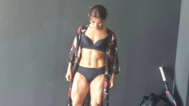 영상 속 김혜선은 검은색 운동복 셋업을 입은 채 바디 프로필을 촬영하고 있었다.