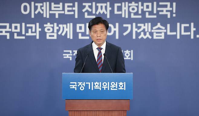 ▲ 국정기획위원회 조승래 대변인이 17일 서울 종로구 정부서울청사 창성동 별관 내 국정기획위 기자실에서 브리핑을 하고 있다.
