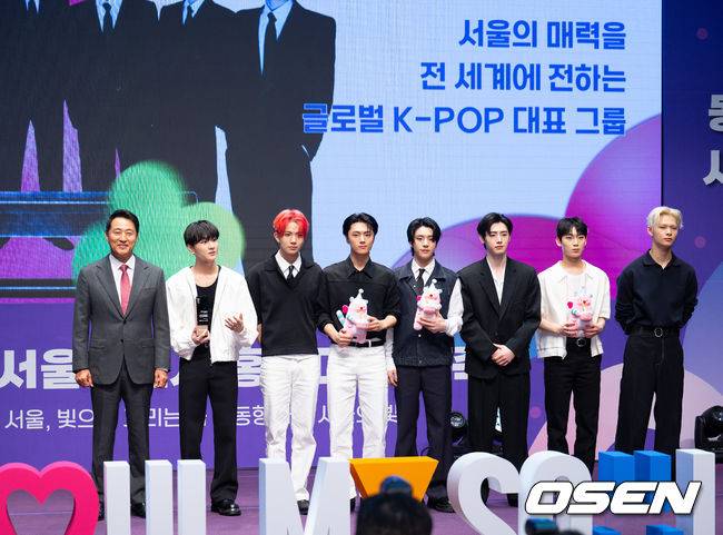 그룹 엔하이픈이 오세훈 서울시장과 함께 기념촬영을 하고 있다. 2025.06.17 / ksl0919@osen.co.kr