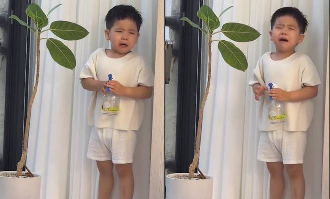 특히 준범이는 마치 식물을 위로하듯 손으로 나무를 잡고 서 있는 모습이라, '왜 우는 걸까'라는 부모의 궁금증에 누리꾼들도 "귀엽고 웃기다", "준범이 감정선 너무 디테일한 거 아니냐"는 반응을 보였다.
