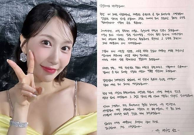 [TV리포트=이지은 기자] 트로트 가수 별사랑이 손편지로 결혼 소감을 전했다.