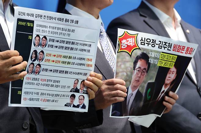 전날 <한겨레>는 심 총장이 2024년 10월 10일 비화폰으로 김 수석에게 전화를 걸어 12분 32초 동안 통화했고, 다음날에는 김 수석이 심 총장에게 전화해 11분 36초 간 통화했다고 보도했다. 그리고 엿새 뒤, 검찰은 김건희씨의 도이치모터스 주가조작 의혹을 무혐의로 종결했다.