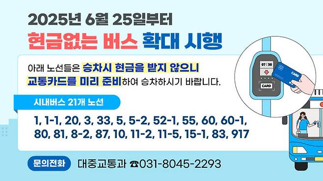 안양시, '현금 없는 버스' 25일부터 21개 노선 226대 운행